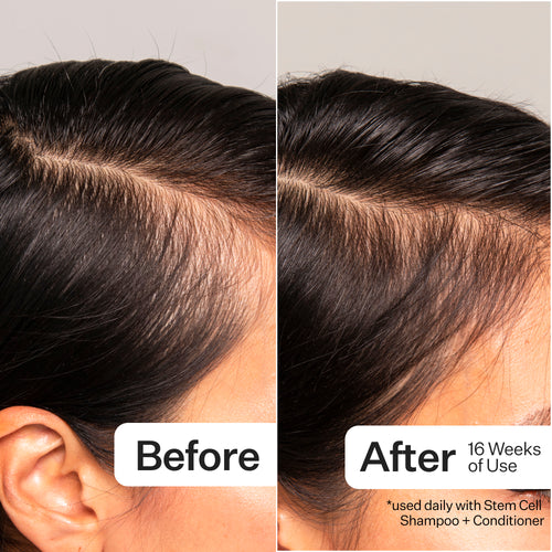 The Stem Cell™ Scalp Serum is a lightweight daily serum to support overall scalp health, creating a healthy environment for hair follicles. The 3% Stem Cell Peptide Treatment™ is an intensive daily treatment formulated to fortify and optimize the hair follicle to increase the look and feel of hair density.